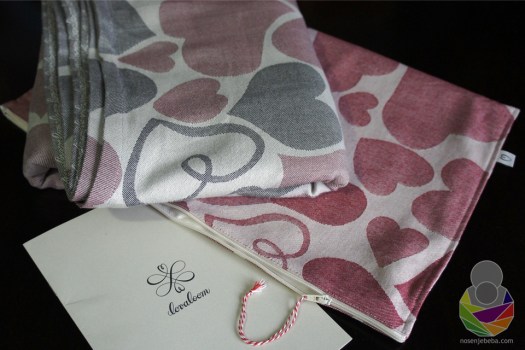 Love (at first sight?) arrived a few days ago and I do love it! It’s a 240 GSM all cotton candy, cushy on the shoulders, very forgiving of a sloppy wrapjob and is self pleating! It basically wraps itself so nailing that middle marker is actually pretty easy. ❤ Unfortunately it’s too slippery for knotless finishes and slipknots but the carries in Love looked awesome with them. This is actually a very soapy wrap with little texture but the reverse has a bit of a velcro-ish grip so it evens out. It’s great with a wriggly teething toddler and kept me sane for several days.