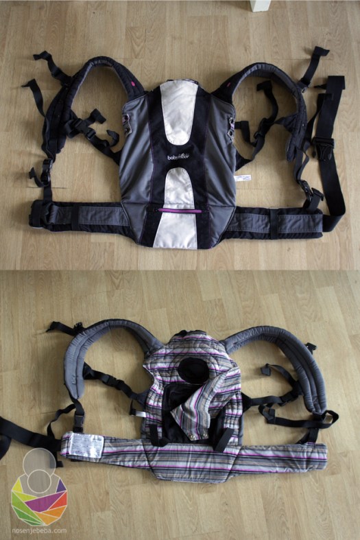 Nakon kratkog uvoda osvrnut ću se na noviju “Bjornicu”: BB One. Dakle beba se zajedno s punjenim čvrstim panelom otkopčava od konstrukcije s naramenicama i potporom za lumbalni dio kralježnice. U ovoj nosiljci nije moguće nošenje na boku. Vrlo je slična modelu Chicco Close to You, s tim da ima malo užu bazu od Erga 360. Pruža optimalan položaj bebi do otprilike 8. mjeseca (ovisno o veličini bebe). Naravno može se koristiti i dalje ali nositelj treba biti svjestan da baza više neće pružati podršku od koljena do koljena. (Model s mrežicom s fotografija ima znatno mekši panel od drugih One modela čiji je panel poprilično krut!)