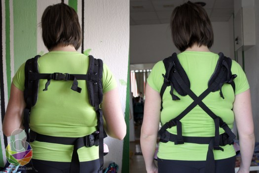 Naramenice su punjene rjeđim tipom pjene, malo gušćim od uobičajene spužve, a pojas je punjen srednje tvrdom memorijskom pjenom. Na naramenicama i pojasu nalaze se sigurnosne gumice, očekivano, iza kopči. Naramenice se teoretski mogu križati ali za taj pothvat biste trebali pomoć druge osobe jer se naramenice ne kopčaju u panel nego visoko kod lopatica. Isto vrijedi i za nošenje na boku. Nošenje naprijed i na leđima izuzetno je udobno i praktično jer se nosiljka vrlo lako namješta.