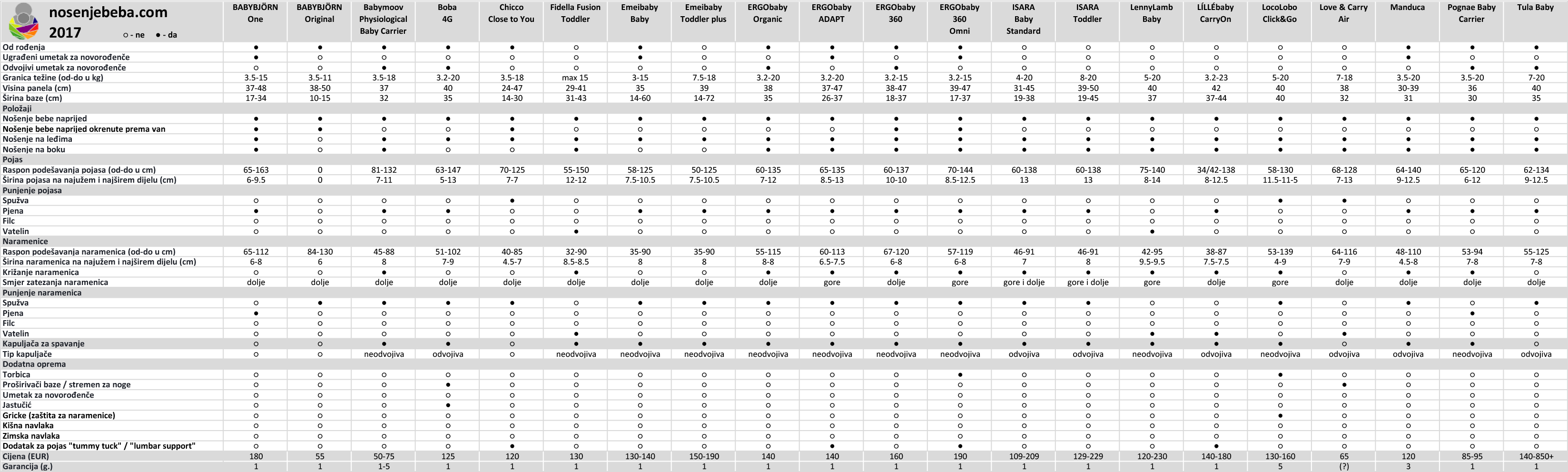 Detaljne specifikacije svih navedenih nosiljki u ovom postu: Usporedna tablica nosiljaka
