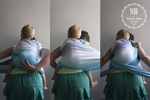Vez odličan za teške bebe: DH (op. a. kalk. “dvostruka ležaljka”) sastoji se od dva horizontalna sloja u kojima leži bebina guza. Oni prebacuju težinu na trup nositelja i približavaju bebu osi težišta, a “križ” pod guzom osigurava vez i “diže” bebu uvis.