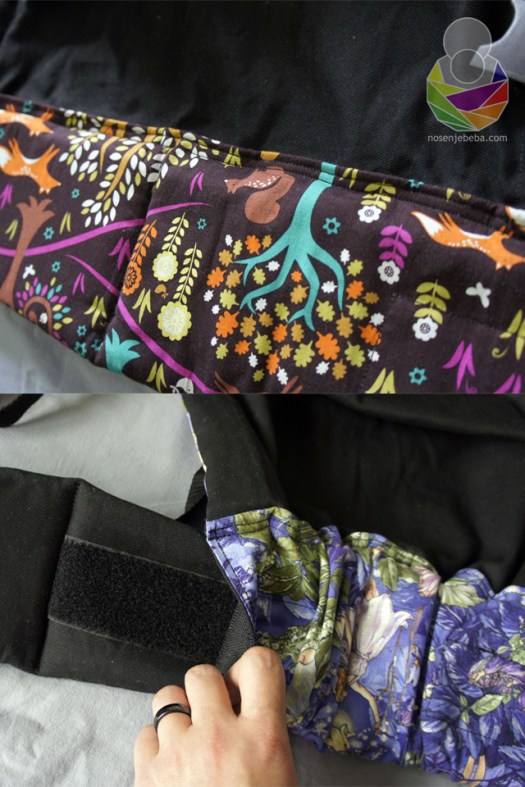Umjesto da se podeblja punjenje u naramenicama gurtne su prekinute kako ne bi na sebe preuzimale težinu i propadale kroz punjenje. Na ovaj vrlo jednostavan i iznimno učinkovit način naramenica, a ne gurtna, preuzima na sebe težinu bez osjećaja zarezivanja ili ukopavanja, a i bez nepotrebno debelih i glomaznih dijelova na nosiljci. Konačno je netko s naših prostora shvatio prednost nad masovnom proizvodnjom i industrijskim dizajnom!