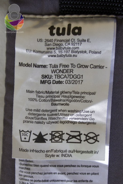 Veseli me što je Tula FTG stvarno mekana nosiljka i što će i pojasom odgovarati većini nositelja s rasponom od 67 do 137 cm. Kvalitetno je odrađena, dapače čini mi se da su sada pomnije birani materijali i preciznije odrađeni šavovi nego kod starije poljske prethodnice.