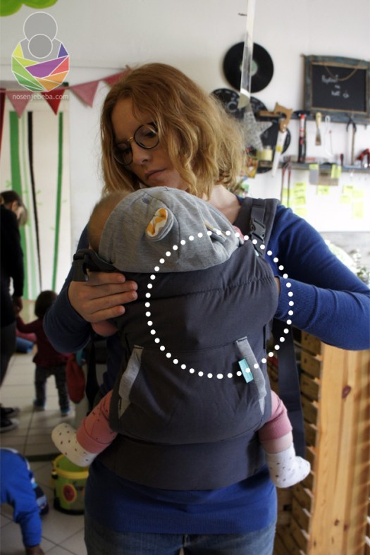 Nosivost ove nosiljke provjeravala sam na mamama i bebama različite građe, Na fotografiji su bebice od 5 i 6 mj.