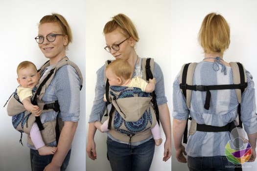 Ovu nosiljku ne bih preporučila od rođenja no kad beba skupi nešto kilica nakon mjesec dana starosti bi trebala biti odlična. Guza može lijepo duboko upasti i osigurati optimalni položaj: nijedna oblikovana nosiljka (s nekoliko izuzetaka) ne može osigurati idealni duboki M položaj kao u slingu ili tkanoj marami, no one s dobrim krojevima mogu se tome približiti i zato nude svoj optimum. Prije nošenja bebe u mekoj oblikovanoj nosiljci provjerite ima li bebica kakvih zdravstvenih poteškoća radi kojih je nošenje preporučljivo isključivo u slingu ili tkanoj marami.