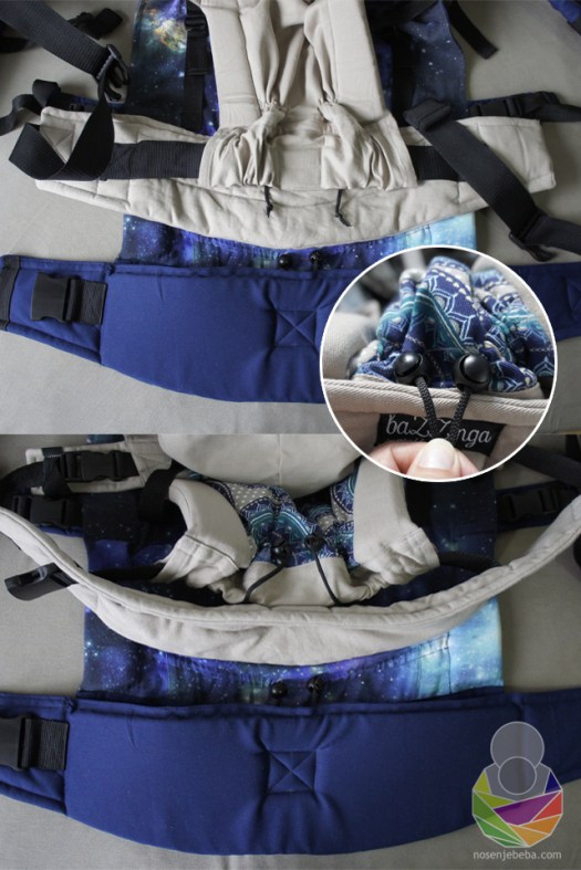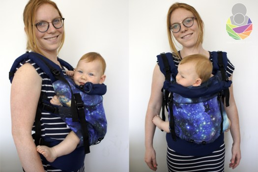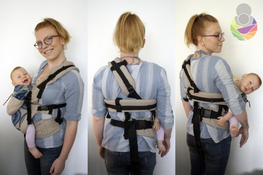 Novost u dizajnu je visoka prilagodljivost nosiljke. Model veličine baby nosiv je od 1. mjeseca pa do otprilike 18 mjeseci (može i dulje ali gubi se udobnost), veličina toddler od otprilike bebinih 8 mjeseci pa do predškole. Nosiljka se prilagođava u širini pojasa klizanjem baze panela po remenu prišivenom s unutarnje strane pojasa, a po visini skraćivanjem i produljivanjem pomoću gurtne s klizačem.