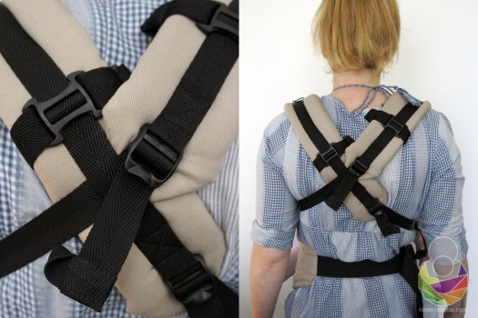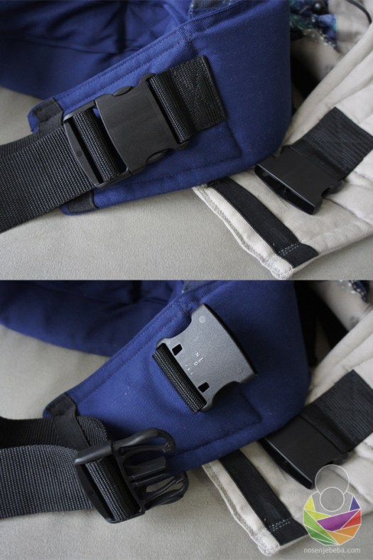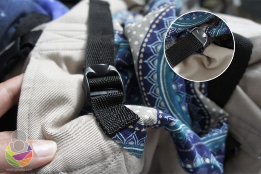 Naramenice imaju i kopču i zatezač što je zgodno rješenje jer ne treba seliti kopču naprijed-nazad kod promjene položaja. Također se tako ne gubi mogućnost križanja naramenica koja omogućava i nošenje na boku.
