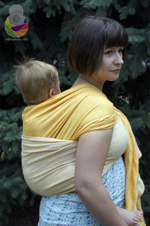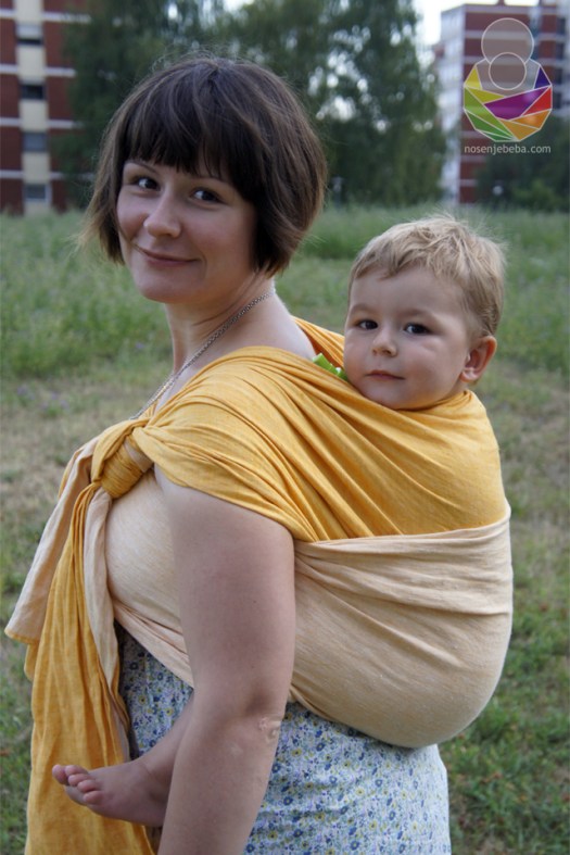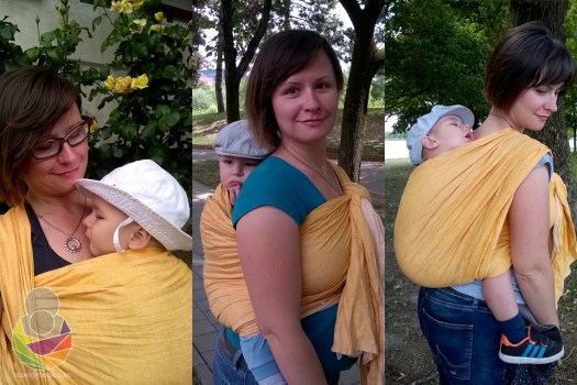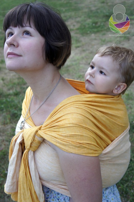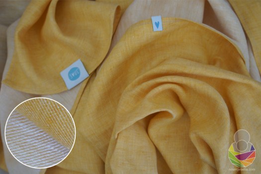 The Indian company Soul Slings sent me their signature linen wrap in size 4 (3.6 m; my base size -2). I has a right and wrong side. Linen is known as an ideal summer material, especially for hot summers, just like we have in Croatia. There are tiny irregularities noticeable in the weave because of the nubs and snubs in flax threads. This gives a unique character and texture to a wrap, although is more usual with more expensive boutique wraps such as Go Bananas (Yarnlova model of Lovaloom). Soul’s signature linen woven wraps are quite dense for 100% linen at 220 GMS. Woven linen wraps are usually much lighter and thinner, but this wrap also gives a very small knot and is light in hand.The weave is dense, therefore not prone to pulls, in short, you do not have to save it. 😉 This is a real workhorse.