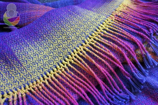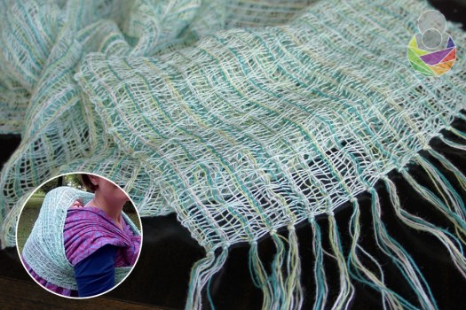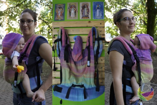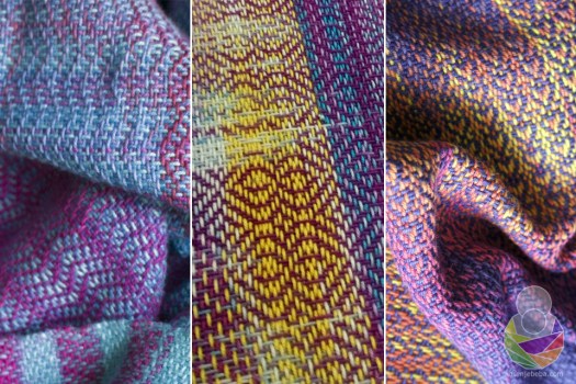I’ve chosen the twill variation heart weave, which is very light and airy, with visibly different textures of the right and wrong side. Additionally, I couldn’t help opting for the fringes. This year fringes are very popular on handwoven wraps. They drape beautifully and add to the overall appearance of the wrap. I just had to try them! I was initally apprehensive of all types of fringes until Mima convinced me to give them a try. I was afraid they would get entangled and make the wrapping difficult, but now I can say I was pleasantly surprized by them.