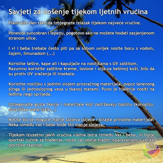 Kad je pakleno vruće znojimo se i bez bebe i nosiljke na sebi pa bi bilo dobro pratiti neke osnovne savjete kako ne bismo pregrijali bebu i sebe.