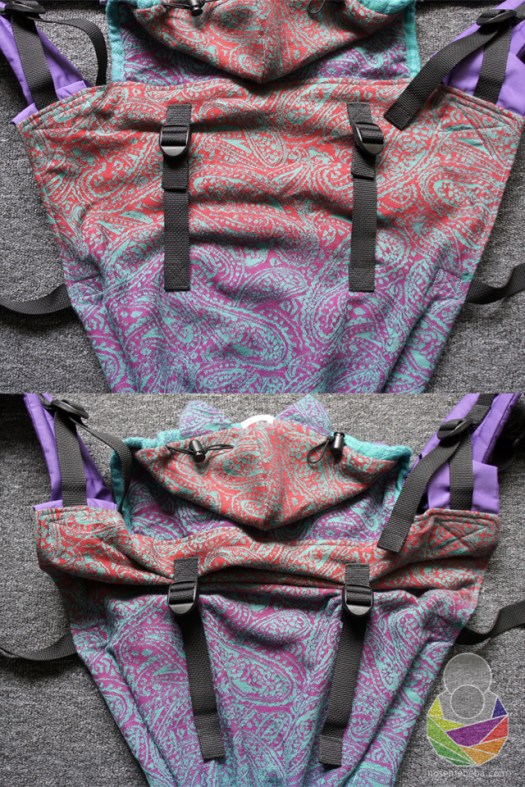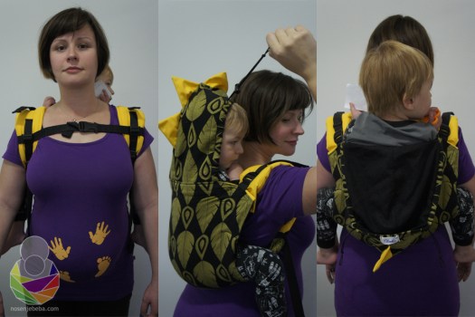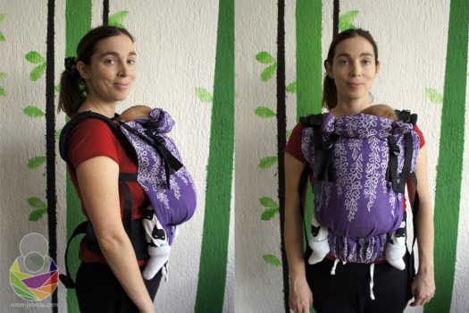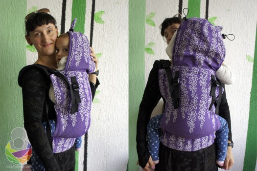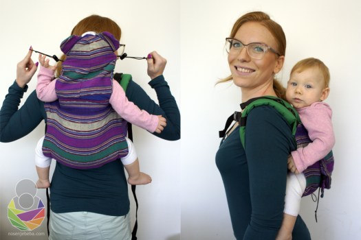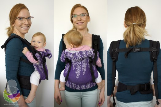 …i na leđima! Stvarno je moguće postići vrlo visoko i udobno nošenje bez deformacije pojasa, panela ili naramenica. Za visoko nošenje pojas se diže visoko na rebra i steže, a naramenice se više krate i jače stežu.