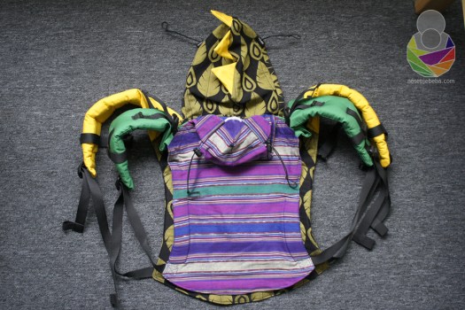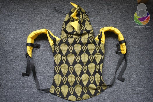Za novu recenziju stigle su četiri nosiljke s novim dizajnom: onbuhimo i meka oblikovana nosiljka (eng. SSC; soft structured carrier) u veličinama baby i toddler. Sve su djelomična prekrojavanja tkane marame (eng. semi WC; semi wrap conversion) s lanom s unutrašnje strane panela, osim baby onbuhima koji s unutrašnje strane ima keper.