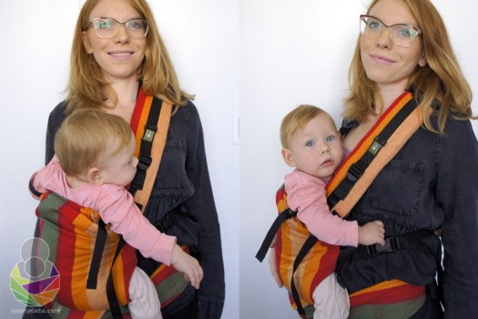 Ovu nosiljku ne bih preporučila za nošenje beba mlađih od četiri mjeseca. Preambiciozno su krenuli s dizajniranjem nosiljke koja bi trebala pokriti preveliki raspon nošenja. Također treba naglasiti da ovo nije nosiljka za bebe koje vole imati ruke izvan panela jer ni sa najvećim skraćivanjem panela četveromjesečna beba ne može izvući ruke van, dapače utone preko vrata u nosiljku. Vjerujem da uskoro možemo očekivati i Second Generation LennyUp s manjim rasponom nošenja od rođenja do godine i pol ili barem ispravke u uputstvu: da je nosiljka nosiva od najranije četiri mjeseca i da se na leđima može nositi od bebinog samostalnog posjedanja, a ne od prvog mjeseca (ili od četvrtog mjeseca) kako trenutno piše. 😉