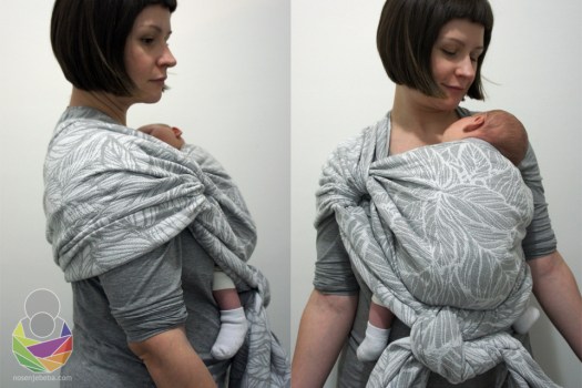 Za testiranje sam se prijavila u trudnoći i nadala sam se da ću maramu testirati samo s trinejdžerom (op. a. trogodišnjim tinejdžerom 😀 ) no po dogovoru sam ipak došla na red nakon što sam rodila. Mada Aspen Winter nije zamišljena kao marama za novorođenčad ponašala se odlično unatoč svojoj debljini.