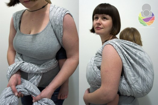 I have tested the wrap with baby’s big brother in the most demanding carry for a heavy toddler: a plain rucksack. She pleated itself on the shoulders and was comfortable for putting to sleep but under 15 kilos sagged for a few centimeters. For the heavier babies, it would be nice to spice up the blend with a little flax or hemp to reduce its stretch, or simply wear Aspen Winter in multipass carries.