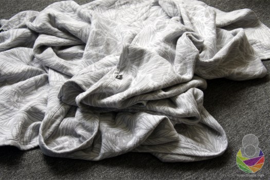 Rastezljivost i velika elastičnost uvijek su dodatni argumenti za biranje marame odlične za male bebe. Konkretno je ovoj marami minus njezina debljina, ili plus ako ste veliki ljubitelj dekica. Muški čvor velik je gotovo kao bebina guza u debeloj platnenoj peleni. Tester je poslan u veličini 5, što je moja osnovna veličina -1. Marama se mota malo kraće radi debljine i ogromnog čvora. Također je nezgodno i održavanje vunene marame, a sjetite se da novorođenčad kaka eksplozivno (pogotovo ako su u jednokratnim pelenama). O održavanju i materijalima tkanih marama više ovdje.
