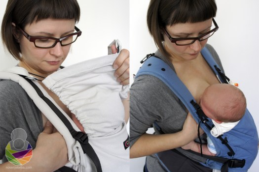 Tijekom nošenja se itekako može dojiti ali prvo si dozvolite da savladate dojenje i nošenje kao odvojene vještine. Tijekom prvih mjeseci dojenje tijekom nošenja neće biti sasvim bez ruku jer bebi treba pomoć u hvatanju bradavice ali i zadržavanju položaja. Mame koje doje dok nose primjećuju da bebu uopće ne trebaju podrigivati jer se bebe niti ne nagutaju zraka (osim ako naravno ne doje u položaju povišene kolijevke). Za dojenje tijekom nošenja trebate dobar grudnjak, upijajuće jastučiće, tetru ili nježnu flanelku zbog bljuckanja i rastezljivu dekoltiranu majicu, košulju ili majicu za dojenje.