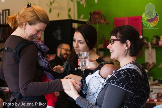 Nina: Savjetnica za nošenje je tu da pomogne i olakša roditeljima snalaženje u šumi nosiljaka, da im pomogne u odabiru onoga što najbolje odgovara njihovim potrebama, i da im pomogne u savladavanju pravilnog korištenja odabrane nosiljke. Kod većine nosiljaka postoje brojne mogućnosti, pa kako beba raste tako se roditelji okreću drugim mogućnostima u nošenju, i tu se onda stvara veza između savjetnica i roditelja. One su tu da pomognu i s novim izazovima kao što je nošenje na leđima, koje roditeljima daje slobodne ruke. 🙂 To je odnos koji se gradi i održava u malim bebonosećim zajednicama koje onda prerastaju u nešto puno veće.