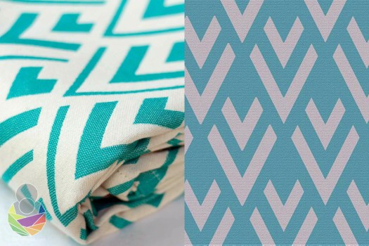 Chrysler Marina is a cotton wrap machine-woven with an old double weave: a double weft and a double warp are interwoven to create a geometric chevron pattern. (“Double layer fabric” here appears in the sense of double weaving, in this wrap there are no double layers of fabric such as in Ali Dover’s Hygge wraps.)