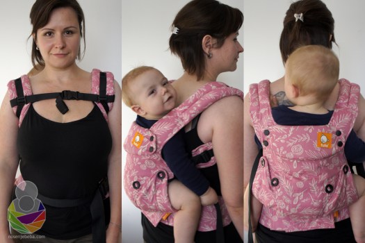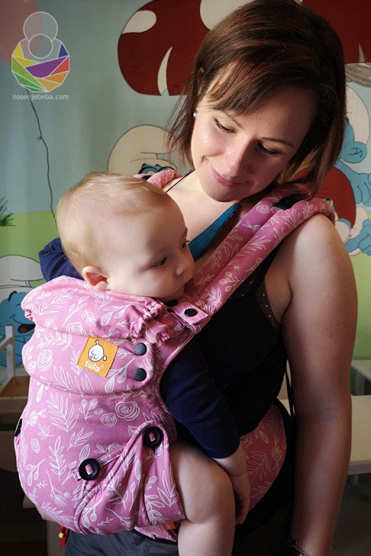 Na srednjem podešavanju s četveromjesečnom bebom (na početku recenzije) nosiljka se ponašala odlično, no nezgodno je što beba prosječne visine ne može izvući ruke iznad panela sve do devetog mjeseca.