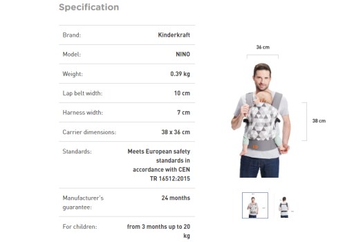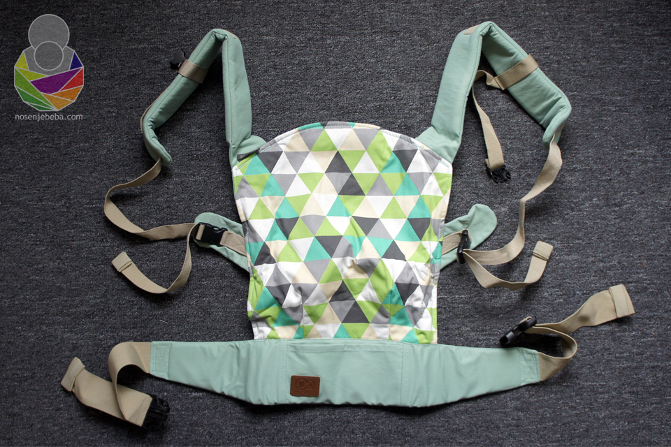 Nino je nosiljka lišena svega što neiskusne roditelje plaši. Ima četiri kopče i treba namjestiti samo pojas, naramenice i poprečni remenčić. I ništa drugo. Nema umetaka, podešavanja duljine naramenica, dvosmjernog zatezanja, sužavanja ni skraćivanja panela, nema čak ni kapuljače. Na pojasu se nalazi samo jedan plitki džepić za maramicu ili mobitel.