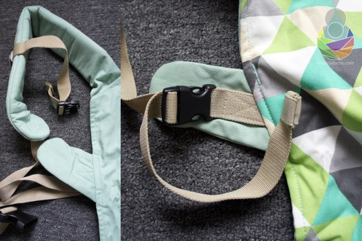 Na pojasu se nalazi jedna jednostavna kopča, no ne Duraflex ili YKK na koje smo do sada već navikli viđati na nosiljkama za bebe. Nexusove kopče uobičajene su na ruksacima. Na pojasu nema sigurnosnih gumica, a sama kopča nema ni osigurač. Naravno provjerila sam kako bi se nosiljka ponašala u slučaju da kopča ne “klikne” do kraja, ili čak pukne.