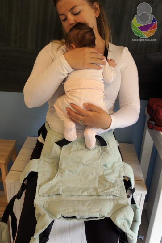 Manducu First isprobala sam s bebicom od 7 tjedana, dugom 56 cm i teškom oko 4800 g. Isprobala sam oba načina prilagođavanja za novorođenčad: s “gaćicama” i s remenom sa sužavanje baze, a zatim sam isprobala i kako stoji u XT modelu. Manduca First sa Size-It remenom i XT model zapravo jako slično daju potporu maloj bebi. Naravno najveća je razlika u tome što je to s XT modelom jednostavnije napraviti.