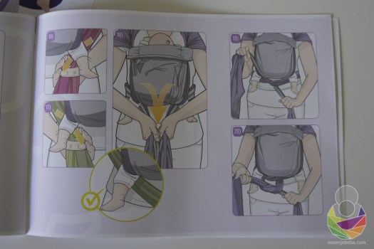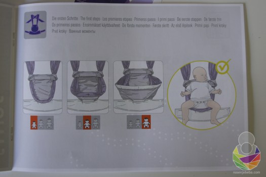 Zanimljivo je riješeno i to kako nosiljka raste u visinu zajedno s bebom: samo tkani materijal prolazi sa strana kroz potporu za glavicu. Kako zatežete krakove, istovremeno i stegnete i osigurate dubinu i širinu sjedišta, kao i samu visinu panela.