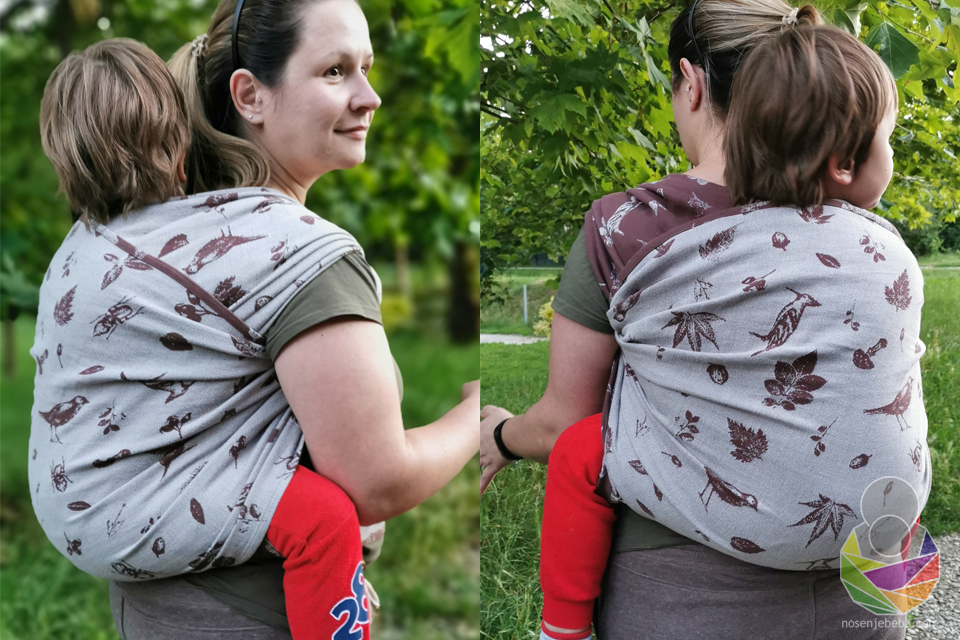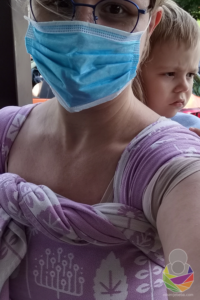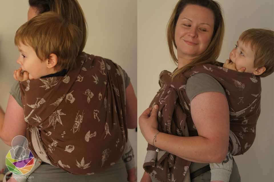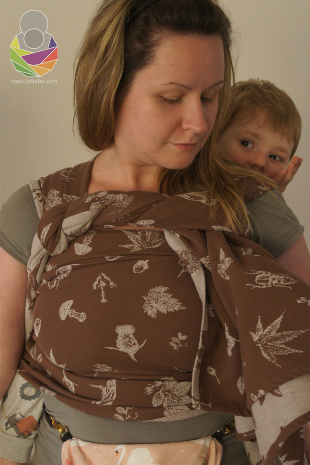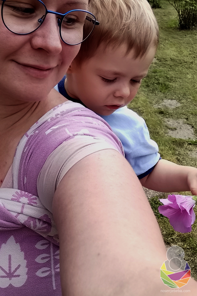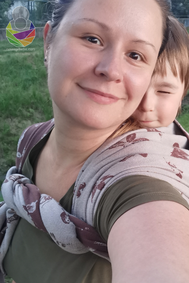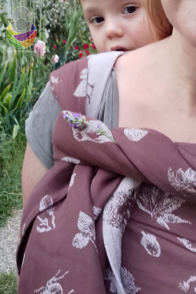 Forest Oak je prozračna, ljetna marama, vrlo udobna i nije se urezivala niti s mojim starijim petogodišnjakom teškim 22 kg. Osim što se nije urezivala, nije se uopće niti otezala, za razliku od Herbs Peonies. Obje marame bile su skoro pa podjednako odlične s mlađim.