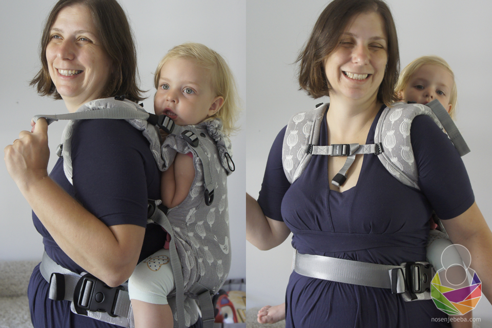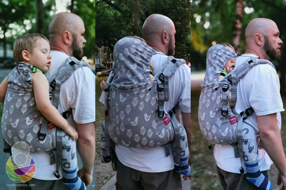 Naravno obje sam nosiljke isprobala i sa svojim mlađim čedovištem starim 2.5 godine, dugim 98 cm i teškim 16.5 kg.