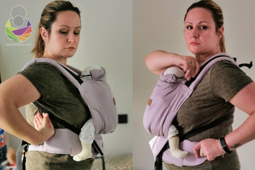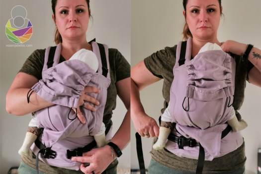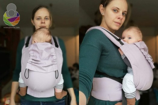 S malim bebama je podešavanje jednostavno, brzo i intuitivno. Isprobala sam ju s demo lutkom veličine novorođenčeta s križanim i s paralelnim naramenicama. Nisam primjetila da se bebin položaj bitno mijenja.